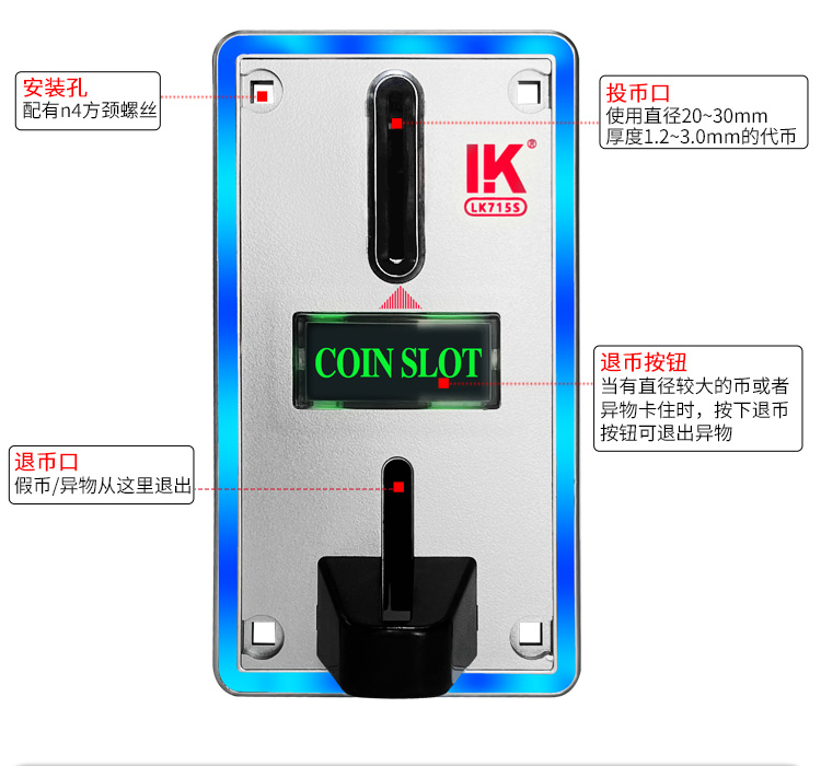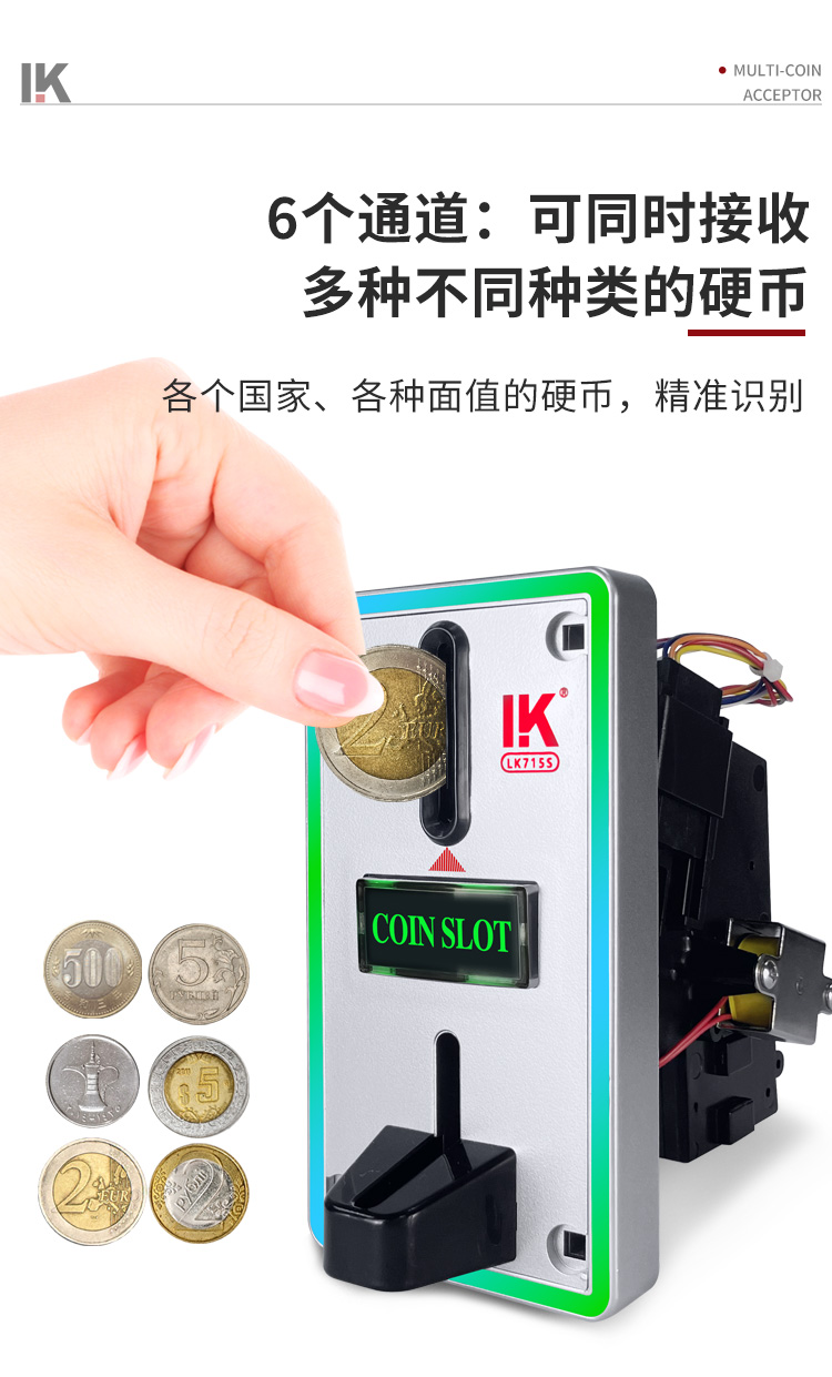 LK715S多币值投币器指示灯娃娃机投币器