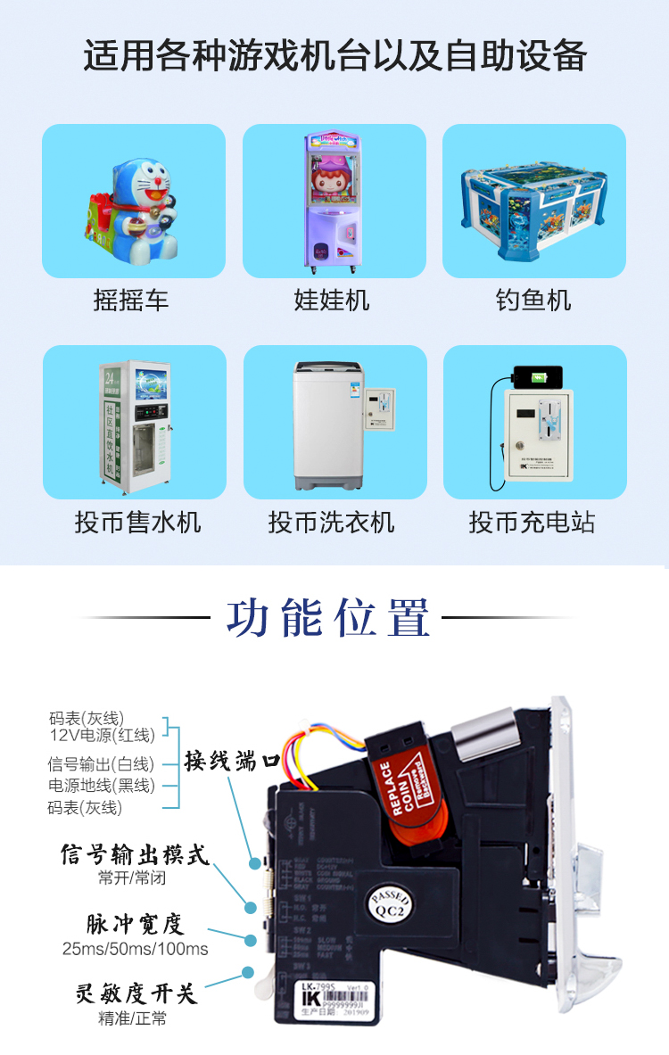 LK799P系列(白色面板)侧投面板投币器带投币指示灯娃娃机投币器